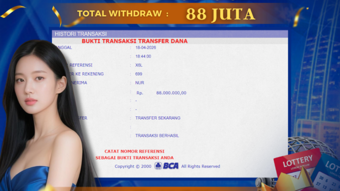 DEWATOGEL mengucapkan selamat kepada user id :NUR*** yang telah berhasil mendapatkan jackpot pada permainan TOGEL DI AMAZON LOTTO 5D. Kemenangan sebesar Rp 88.000.000,-. telah dibayarkan LUNAS oleh pihak dewatogel kepada pemilik user id setelah yang bersangkutan mengisi formulir withdraw. Proses pencairan dana berlangsung sangat cepat hanya dalam waktu 5-10 menit sudah berada dalam rekening pemilik user id. Bukti transfer yang dapat anda lihat adalah bukti SAH / VALID yang langsung di dapatkan melalui bukti transaksi dari Bank yang digunakan untuk pengiriman dana pada rekening pemilik user id. Terima kasih kami sampaikan kepada para pengguna setia DEWATOGEL yang telah menggunakan situs kami, sebagai Bandar Terpercaya yang pastinya membayar semua kemenangan member hingga lunas. Apakah DEWATOGEL PENIPU ? Reputasi “DEWATOGEL TERPERCAYA” sudah sangat melekat. puluhan hingga ratusan ribu pengguna setia DEWATOGEL tetap menggunakan situs terbesar dan terbaik di Indonesia ini. Hapus rasa was-was dan khawatir anda, kemenangan anda berapapun PASTI dibayarkan hingga lunas.
